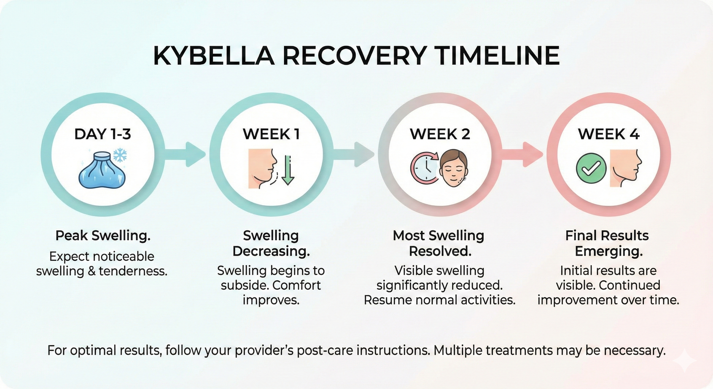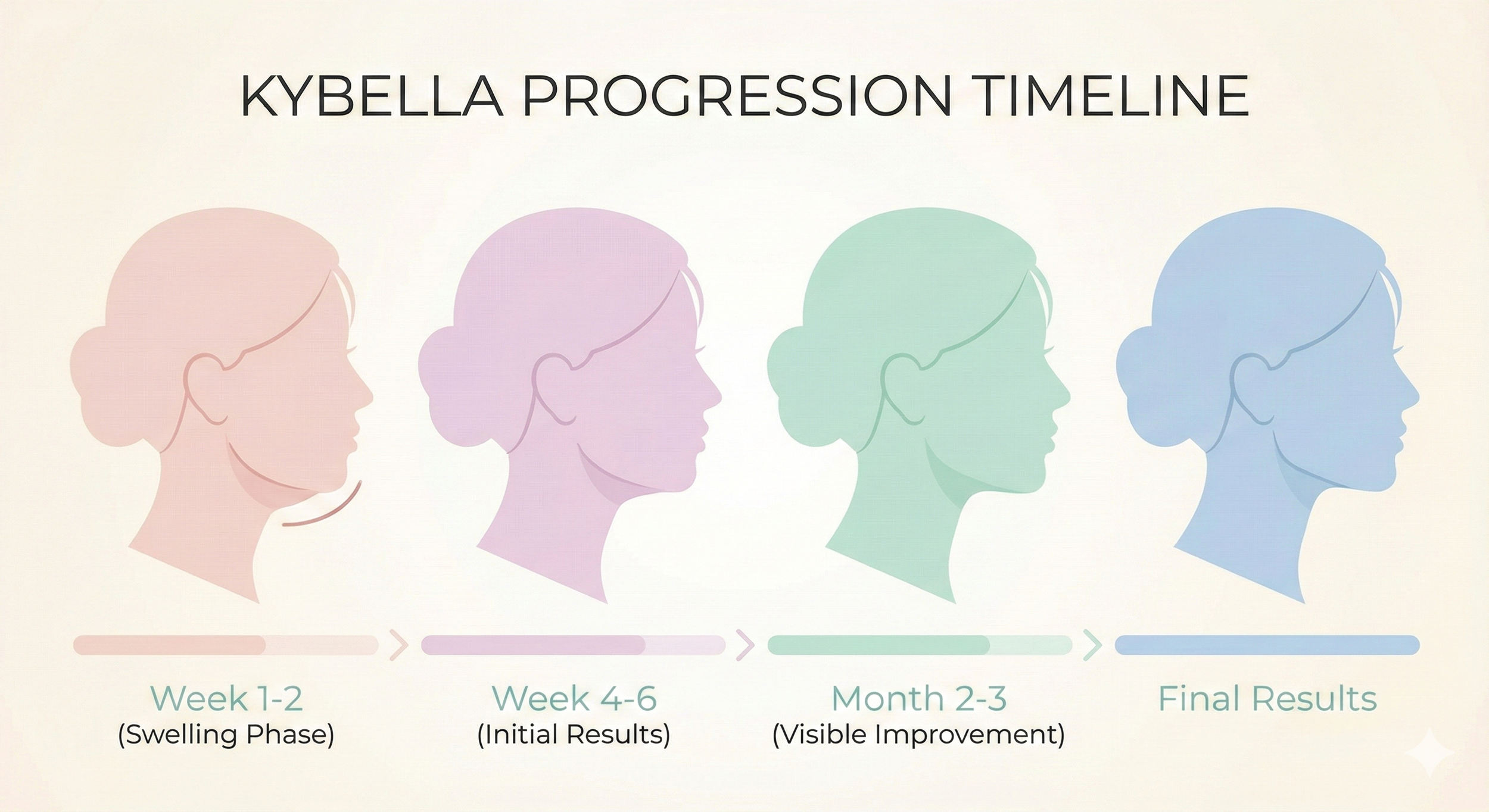 Results are real, but they require patience. Kybella works gradually as your body processes and eliminates the destroyed fat cells over several weeks. You won't walk out of your first appointment with a chiseled jawline. The transformation happens over time. For a detailed breakdown, check out our Kybella results timeline.