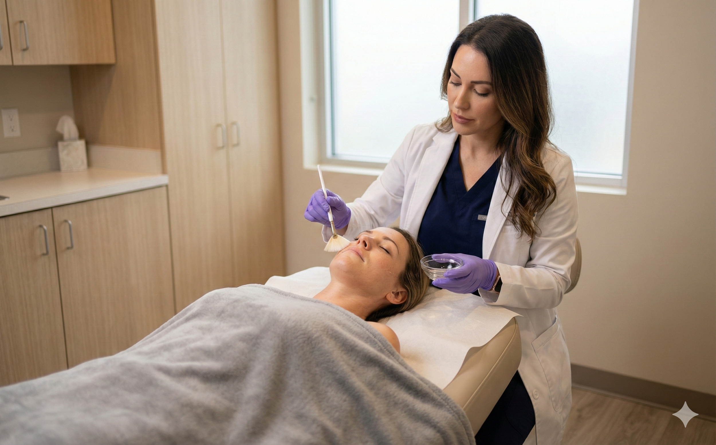Next, your provider applies the peel solution using a brush, gauze, or applicator in careful, even layers. This is where you'll begin to feel the treatment working. Most patients experience a tingling, warming, or mild stinging sensation as the acid activates on the skin. The intensity of this sensation varies based on the peel depth. Superficial peels typically feel like a mild tingle, while medium-depth peels produce a more noticeable warming or stinging that lasts for a few minutes.